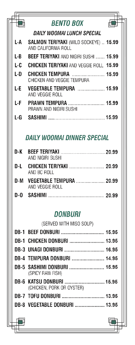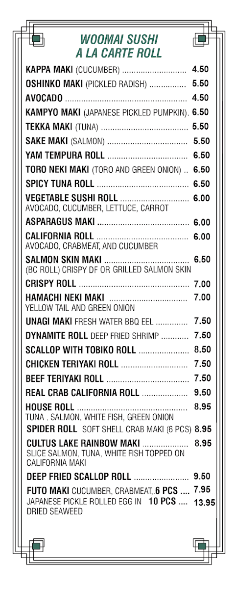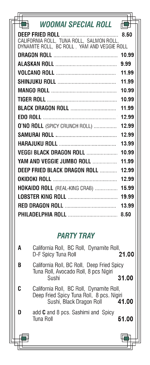Woo Mai Sushi Japanese Restaurant Ltd Menu